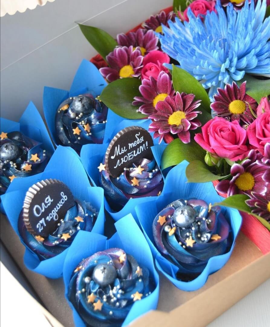 Непередаваемое цветовое сочетание нежных капкейков и свежих цветов покорит любую девушку!