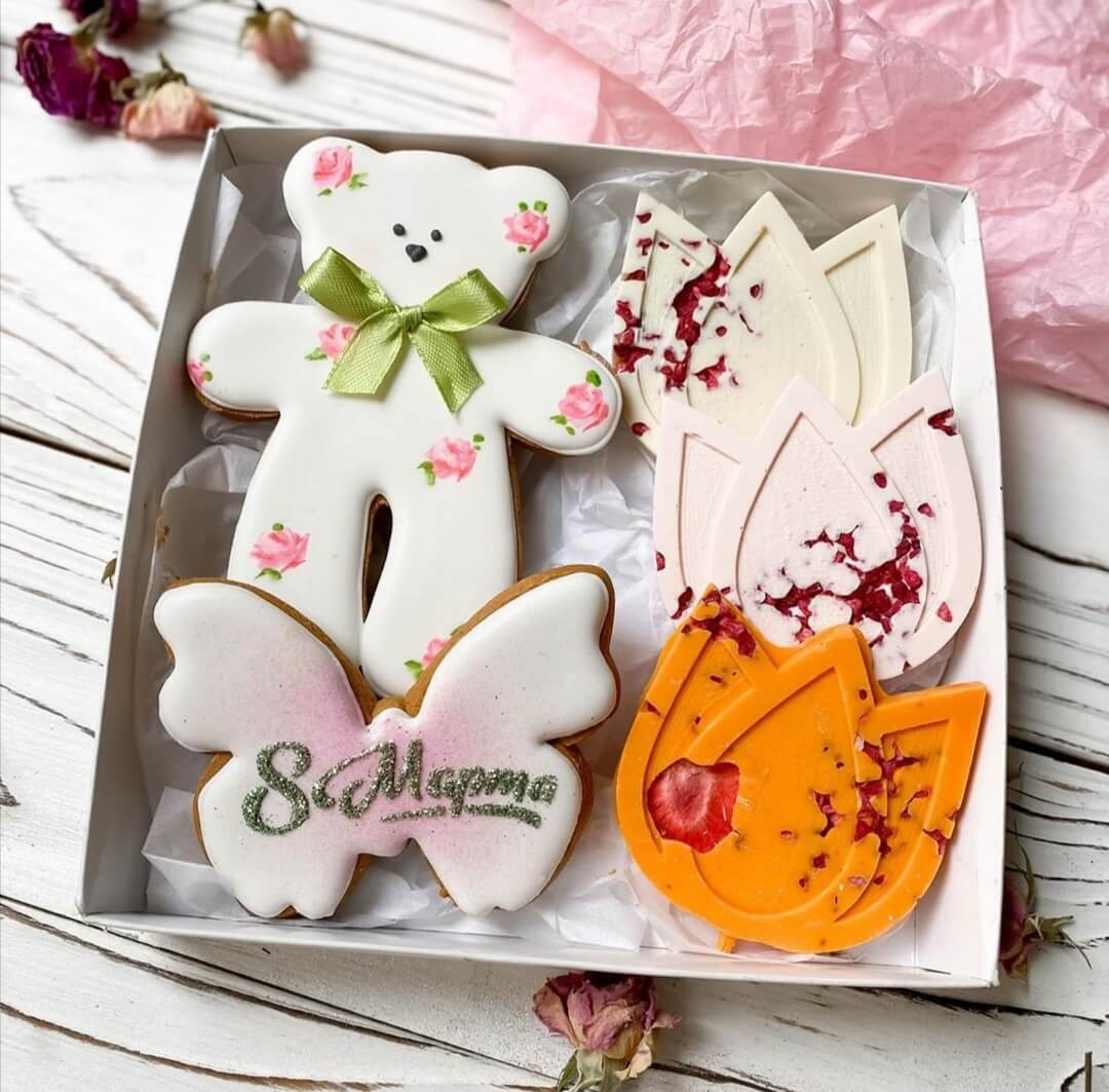 Нежный весенний набор пряничков спешит поздравить всех-всех девушек с 8 марта
