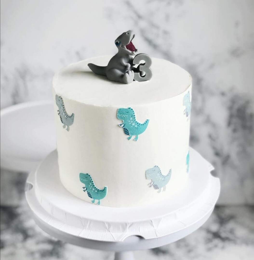Минималистичный, но безумно обаятельный и притягательный тортик с милыми динозавриками понравится как мальчикам, так и девочкам