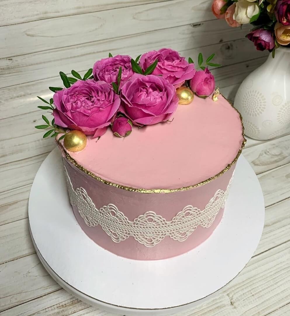Легкий кружевной узор добавляет нежности этому вкусному и очаровательному торту
