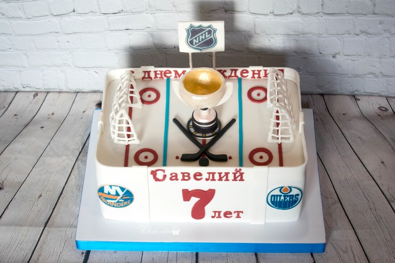 Юному чемпиону с клюшкой и коньками посвящается такой спортивный мальчишеский торт